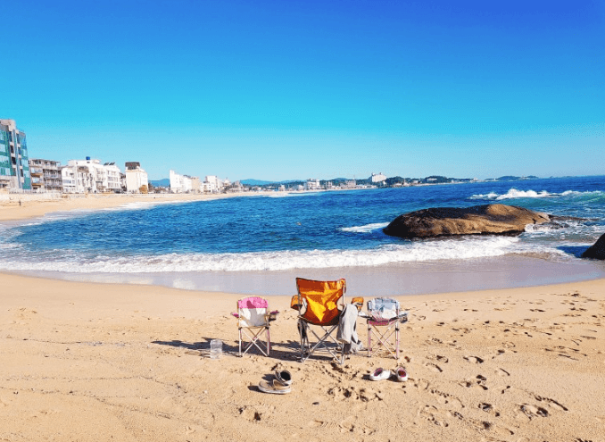 모래사장이 넓고 모래도 고와서 여름에는 돗자리나 텐트, 타프치고 해수욕하기 아주 좋은 곳이에요.